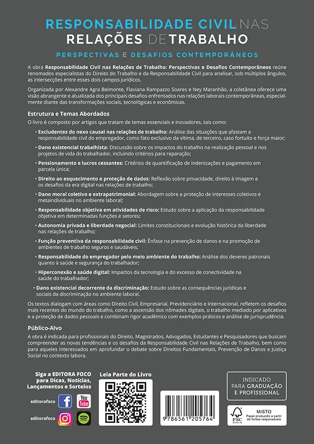 A obra“Responsabilidade Civil nas Relações de Trabalho: Perspectivas e Desafios Contemporâneos”reúne renomados especialistas do direito do trabalho e da responsabilidade civil para analisar, sob múltiplos ângulos, as intersecções entre esses dois campos jurídicos.