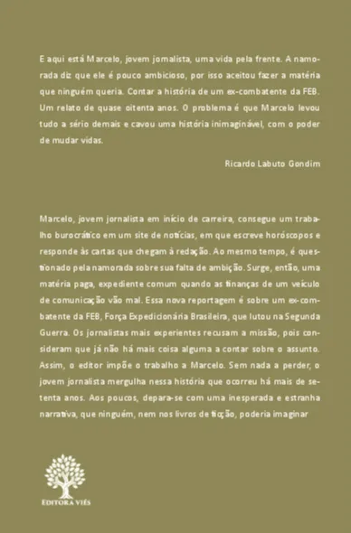 Marcelo, jovem jornalista em início de carreira, consegue um trabalho burocrático em um site de notícias, em que escreve horóscopos e responde às cartas que chegam à redação. Ao mesmo tempo, é questionado pela namorada sobre sua falta de ambição. Surge, então, uma matéria paga, expediente comum quando as finanças de um veículo de comunicação vão mal. Essa nova reportagem é sobre um ex-combatente da FEB, Força Expedicionária Brasileira, que lutou na Segunda Guerra. Os jornalistas mais experientes recusam a missão, pois consideram que já não há mais coisa alguma a contar sobre o assunto. Assim, o editor impõe o trabalho a Marcelo. Sem nada a perder, o jovem jornalista mergulha nessa história que ocorreu há mais de setenta anos. Aos poucos, depara-se com uma inesperada e estranha narrativa, que ninguém, nem nos livros de ficção, poderia imaginar.