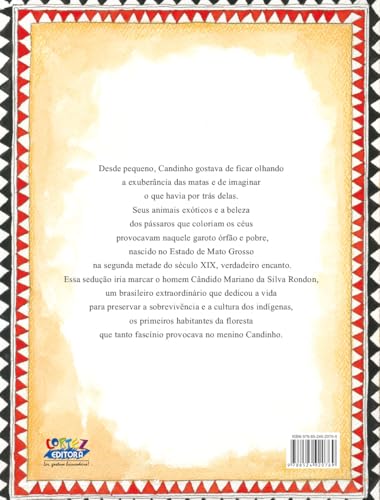 Desde pequeno, Cândido Rondon gostava de contemplar a exuberância das matas e imaginar o que havia nelas: seus animais exóticos e a beleza dos pássaros que coloriam os céus provocavam naquele garoto órfão e pobre, nascido no estado de Mato Grosso na segunda metade do século XIX, verdadeiro encanto. Ele cresceu e se tornou um brasileiro extraordinário que dedicou a vida à sobrevivência dos índios e valorização de sua cultura como primeiros habitantes da floresta.