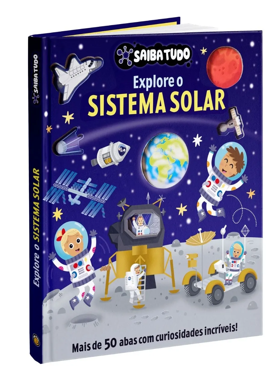 Descubra fatos divertidos debaixo de cada aba. Você fará uma incrível jornada pelo espaço!