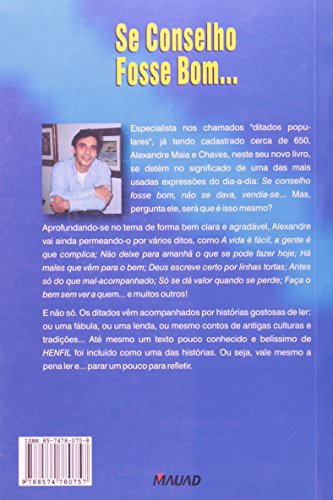 Especialista nos chamados “ditados populares”, o autor se detém no significado de uma das mais usadas expressões do dia a dia: “se conselho fosse bom, não se dava, vendia-se…” Mas, questiona Alexandre, será que é isso mesmo? Aprofundando-se no tema de forma bem clara e agradável, vai ainda permeando-o por vários ditos, como: “a vida é fácil, a gente é que complica”; “não deixe para amanhã o que se pode fazer hoje”; “há males que vêm para o bem” … e muitos, muitos outros! E não só. Os ditados estão acompanhados por histórias gostosas de ler: ou uma fábula, uma lenda, ou mesmo contos de antigas culturas e tradições… Até mesmo um belíssimo texto pouco conhecido do Henfil foi incluído com uma das histórias.