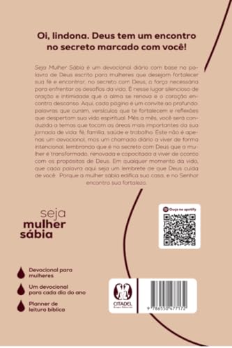 Este não é apenas um devocional, mas um chamado diário a viver de forma intencional, lembrando que é no secreto com Deus que a mulher é transformada, renovada e capacitada a viver de acordo com os propósitos de Deus.