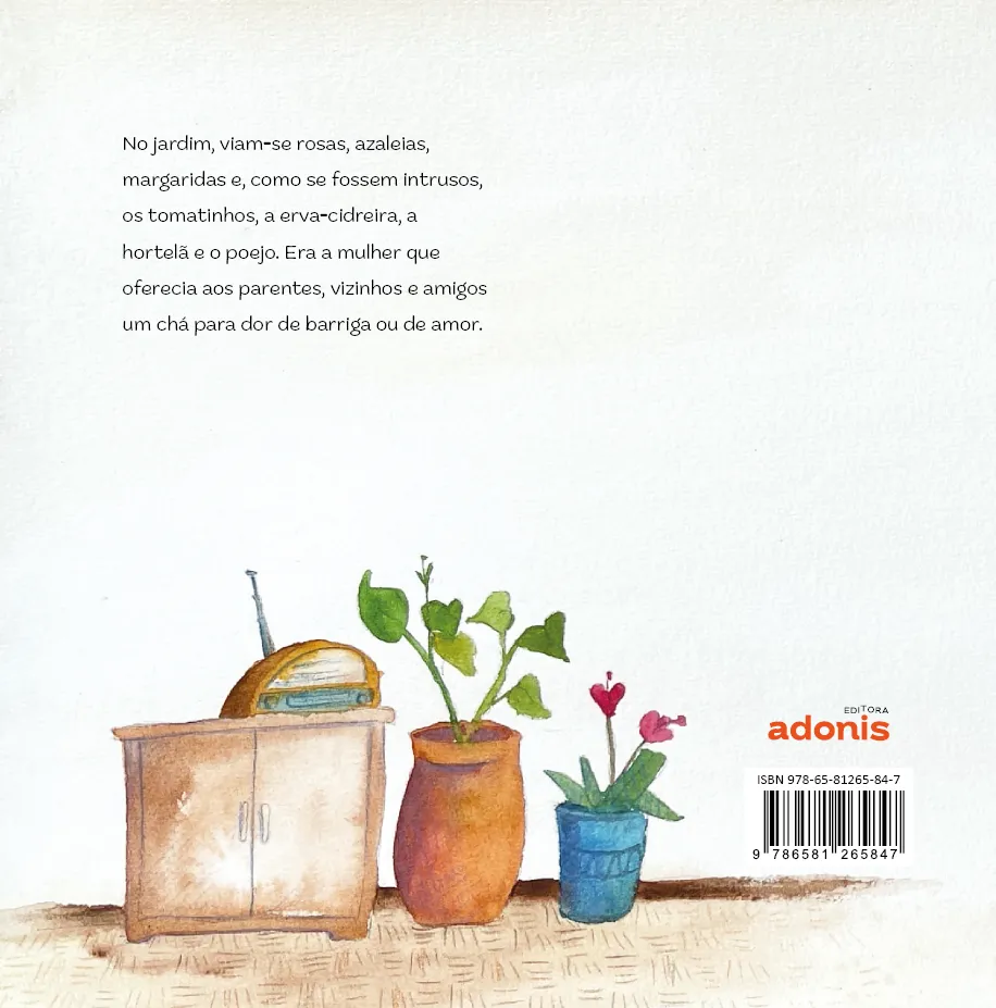 No jardim, viam-se rosas, azaleias, margaridas e, como se fossem intrusos, os tomatinhos, a erva-cidreira, a hortelã e o poejo. Era a mulher que oferecia aos parentes, vizinhos e amigos um chá para dor de barriga ou de amor.