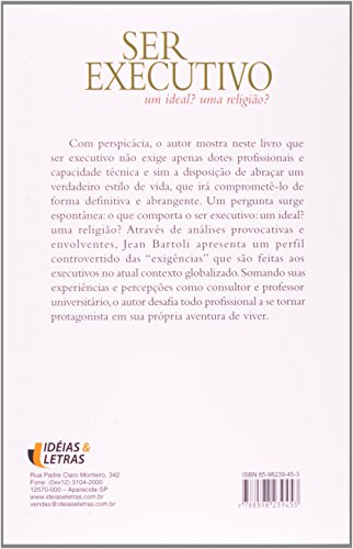 Com perspicácia, o autor mostra neste livro que ser executivo não exige apenas dotes profissionais e capacidade técnica e sim a disposição de abraçar um verdadeiro estilo de vida, que irá comprometê-lo de forma definitiva e abrangente. Um pergunta surge espontânea: o que comporta o ser executivo: um ideal, uma religião? Através de análises provocativas e envolventes, Jean Bartoli apresenta o perfil controvertido das exigências que são feitas aos executivos no atual contexto globalizado. Somando suas experiências e percepções como consultor e professor universitário, o autor desafia todo profissional a se tornar protagonista em sua própria aventura de viver.