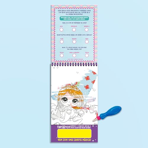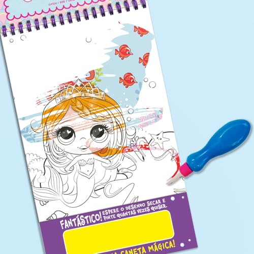 As sereias mais lindas aguardam pelo seu colorido para deixar o fundo do mar ainda mais lindo e divertido com este aquabook. Basta colocar água no pincel mágico para ver a mágia acontecer.