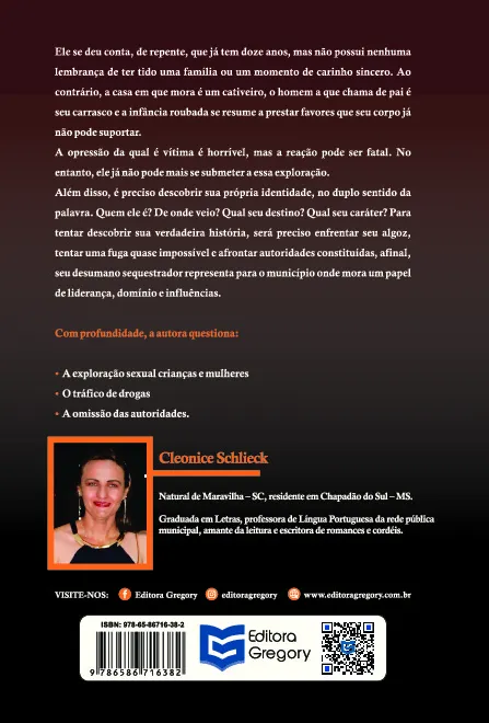 Ele se deu conta, de repente, que já tem doze anos, mas não possui nenhuma lembrança de ter tido uma família ou um momento de carinho sincero. Ao contrário, a casa em que mora é um cativeiro, o homem a que chama de pai é seu carrasco e a infância roubada se resume a prestar favores que seu corpo já não pode suportar.