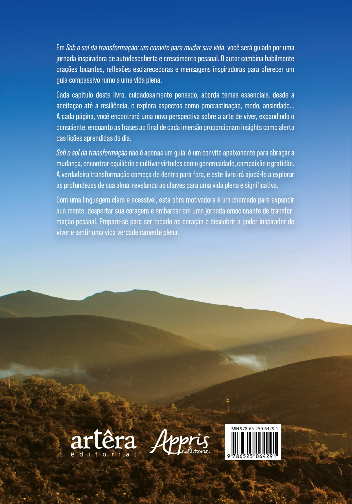 Em Sob o sol da transformação: um convite para mudar sua vida, você será guiado por uma jornada inspiradora de autodescoberta e crescimento pessoal. O autor combina habilmente orações tocantes, reflexões esclarecedoras e mensagens inspiradoras para oferecer um guia compassivo rumo a uma vida plena.