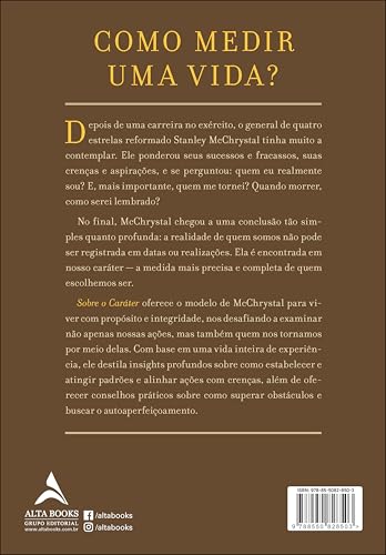 Depois de mais de 34 anos de serviço militar, o general reformado Stanley McChrystal voltou-se a uma questão essencial: o que define verdadeiramente uma vida? Sua resposta é clara e poderosa — o caráter. Em Sobre o Caráter, McChrystal compartilha reflexões profundas e pessoais sobre como convicções e disciplina moldam quem somos e determinam como seremos lembrados. Com base em sua vasta experiência de liderança no Exército dos EUA e no mundo civil, ele apresenta um roteiro inspirador para alinhar valores e ações, cultivar virtudes e enfrentar desafios com integridade. Mais que um relato militar, é um convite universal a examinar escolhas cotidianas e buscar uma vida guiada por princípios. Um livro para líderes, cidadãos e todos aqueles que desejam crescer com propósito.