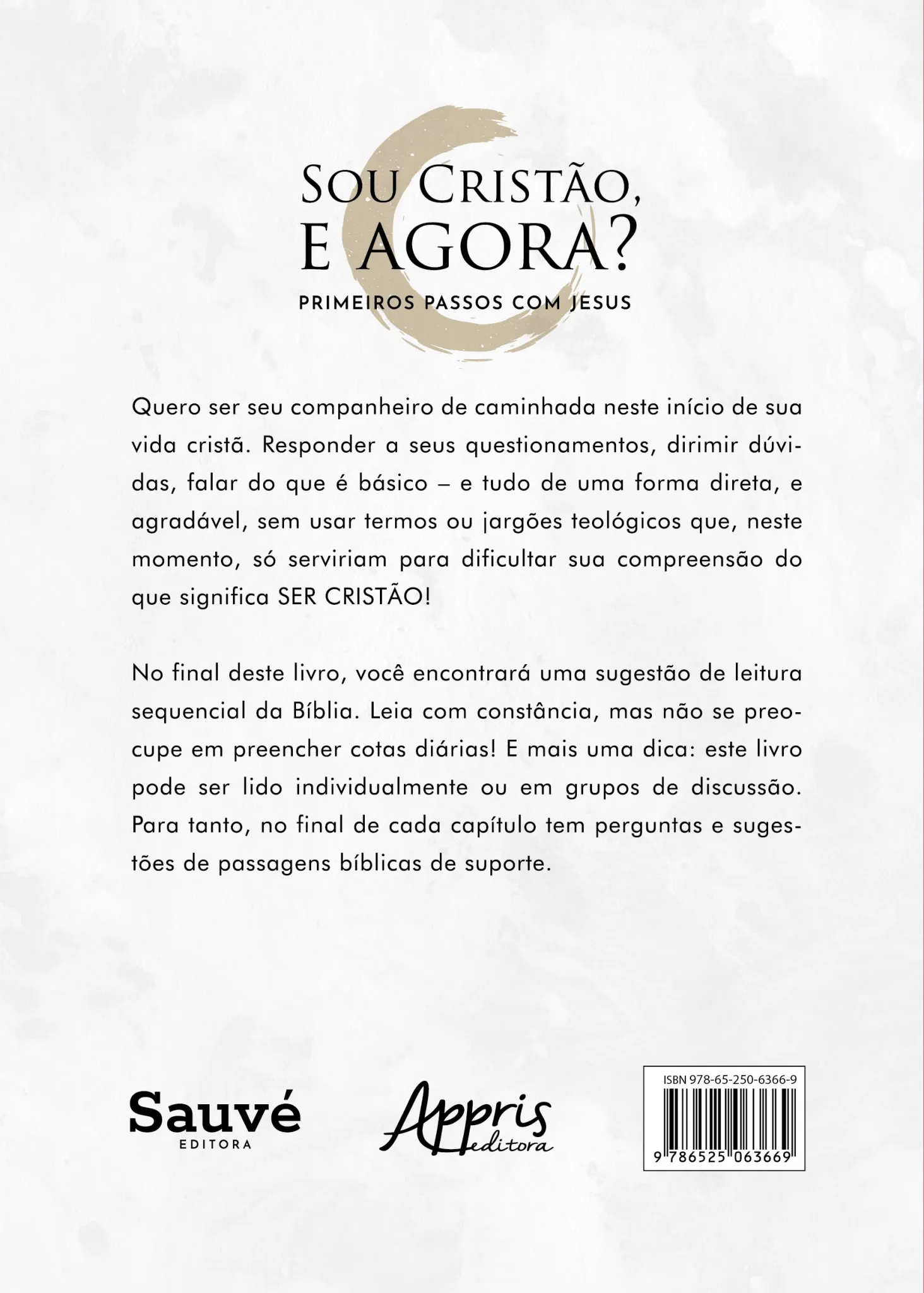 Quero ser seu companheiro de caminhada neste início de sua vida cristã. Responder a seus questionamentos, dirimir dúvidas, falar do que é básico – e tudo de uma forma direta, e agradável, sem usar termos ou jargões teológicos que, neste momento, só serviriam para dificultar sua compreensão do que significa SER CRISTÃO! No final deste livro, você encontrará uma sugestão de leitura sequencial da Bíblia. Leia com constância, mas não se preocupe em preencher cotas diárias! E mais uma dica: este livro pode ser lido individualmente ou em grupos de discussão. Para tanto, no final de cada capítulo tem perguntas e sugestões de passagens bíblicas de suporte.