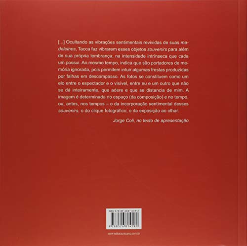 […] Ocultando as vibrações sentimentais revividas de suas madeleines, Tacca faz vibrarem esses objetos souvenirs para além de sua própria lembrança, na intensidade intrínseca que cada um possui. Ao mesmo tempo, indica que são portadores de memória ignorada, pois permitem intuir algumas frestas produzidas por falhas em descompasso. As fotos se constituem como um elo entre o espectador e o visível, entre eu e um outro que não se dá inteiramente, que adere e que se distancia de mim. A imagem é determinada no espaço (da composição) e no tempo, ou, antes, nos tempos – o da incorporação sentimental desses souvenirs, o do clique fotográfico, o da exposição ao olhar. (Jorge Coli, no texto de apresentação).