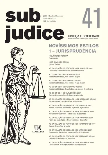 “Sob judice” traz os seguintes temas: Novos Estilos; Direito da personalidade da sexualidade; Responsabilidade pelo risco e culpa; Responsabilidade pelo risco e força maior; Responsabilidade do Estado pela função legislativa; Execução específica de bem penhorado; Empreitada e cumprimento defeituoso; Renda vitalícia, promessa, hipoteca e penhora.