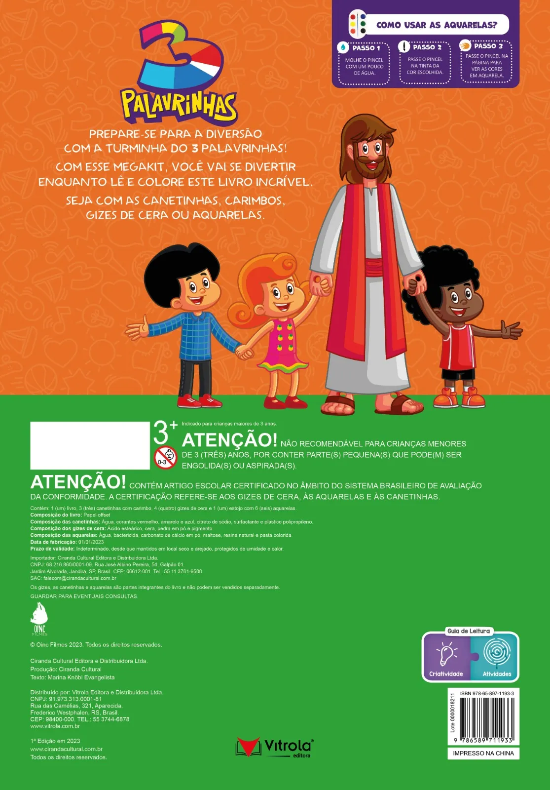 Prepare-se para a diversão com a turminha do 3 Palavrinhas. Com esse megakit, você vai se divertir enquanto lê e colore este livro incrível. Seja com as canetinhas, carimbos, gizes de cera ou aquarelas.