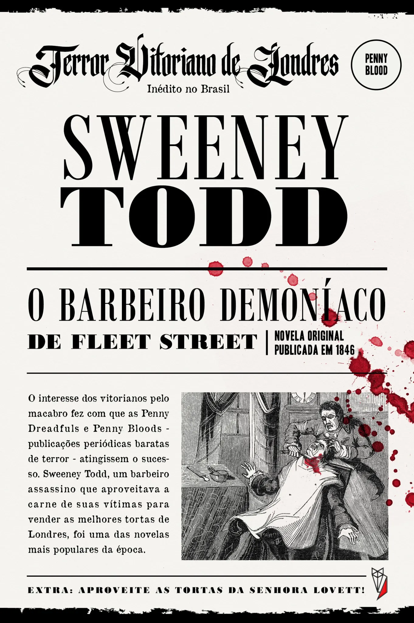 Famosa graças às adaptações para o teatro e para o cinema, a lenda do barbeiro demoníaco da Fleet Street chega pela primeira vez ao Brasil em seu enredo original. Publicado em 1846 sob o título “O Colar de Pérolas”, o livro conta a história da macabra parceria entre um barbeiro assassino, Sweeney Todd, e a fabricante de tortas mais famosa da cidade, a sra. Lovett, que desenvolveram juntos um modelo de negócio muito lucrativo e, ao mesmo tempo, muito perigoso. No entanto, mistérios colocam em risco a sociedade aparentemente bem-sucedida: o desaparecimento de um forasteiro e seu colar de pérolas, a busca incansável de uma jovem apaixonada pelo seu amado e o terrível cheiro nas câmaras subterrâneas da Igreja de St. Dustan. Sweeney Todd é um dos primeiros clássicos da escrita britânica de horror. Ele combina a história de assassinatos em série com um subenredo romântico envolvendo decepção, disfarce e investigação, tendo como pano de fundo as ruas escuras e desagradáveis de Londres. Conheça Sweeney, a Srta. Lovett e Johanna mais de perto, exatamente como os vitorianos fizeram em 1846. O Filme de Tim Burton foi baseado na obra de Stephen Sondheim, por sua vez, baseada neste livro.