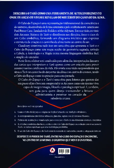 Neste livro, o leitor será conduzido para além das interpretações lineares das cartas que interpretam o Tarô apenas como um oráculo para prever acontecimentos cotidianos da vida. Ele revela uma visão surpreendente que situa o Tarô no caminho do despertar da alma e no centro do cosmos, tendo o Cubo do Espaço como inspiração para esta jornada.