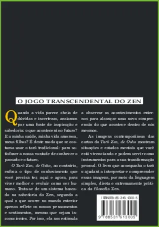 O Tarô Zen, de Osho enfoca o tipo de conhecimento que você precisa ter, aqui e agora, para viver melhor e evoluir como ser humano. As imagens contemporâneas das cartas mostram situações e estados mentais que você está vivenciando e podem servir como instrumentos para a sua transformação pessoal. O livro que acompanha o tarô o ajudará a interpretar e compreender essas imagens, por meio da linguagem simples, direta e extremamente prática da filosofia Zen
