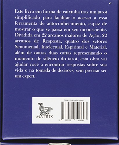 Este livro em forma de caixinha traz um tarot simplificado para facilitar o acesso a essa ferramenta de autoconhecimento, capaz de mostrar o que se passa em seu inconsciente. Dividida em 22 arcanos maiores de Ação, 22 arcanos de Resposta, quatro dos setores Sentimental, Intelectual, Espiritual e Material, além de outras duas cartas representando o momento de silêncio do tarot, esta obra vai ajudar você a encontrar respostas sobre sua vida e na tomada de decisões, sem precisar ser um expert.