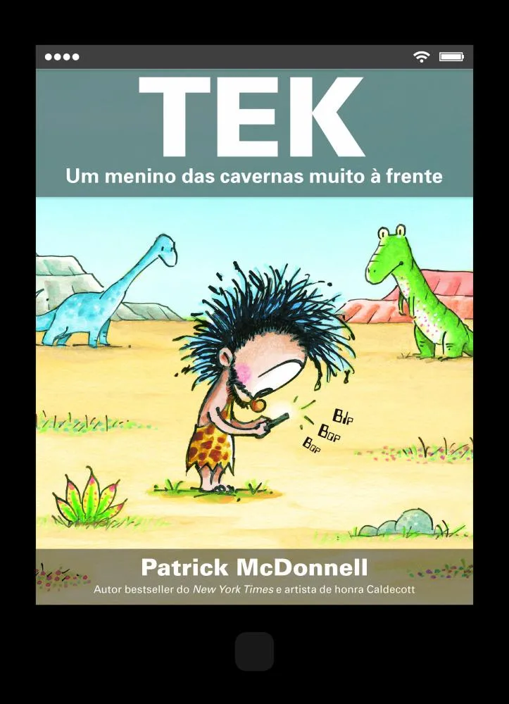 Tek é um menino das cavernas que adora tecnologia: “tablets”, jogos, telemóveis e televisão mantêm-no na caverna, de dia e de noite, colado a todos estes aparelhos. Já nem vê os amigos nem a família e as suas capacidades de comunicação reduziram-se a uma palavra: “GRR!” Será que alguém o conseguirá convencer a desconectar-se, sair e conhecer o nosso mundo fantástico? Uma leitura num formato diferente, que evoca o uso de novas tecnologias, que acabam por ficar sem bateria e desligar-se? Mas, com a magia ao virar da página, Tek (e o leitor) voltam a conectar-se ao mundo real.