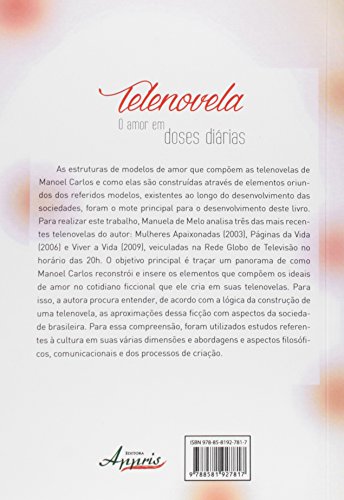 As estruturas de modelos de amor que compõem as telenovelas de Manoel Carlos e como elas são construídas através de elementos oriundos dos referidos modelos, existentes ao longo do desenvolvimento das sociedades, foram o mote principal para o desenvolvimento deste livro. Para realizar este trabalho, Manuela de Melo analisa três das mais recentes telenovelas do autor: Mulheres Apaixonadas (2003), Páginas da Vida (2006) e Viver a Vida (2009), veiculadas na Rede Globo de Televisão no horário das 20h. O objetivo principal é traçar um panorama de como Manoel Carlos reconstrói e insere os elementos que compõem os ideais de amor no cotidiano ficcional que ele cria em suas telenovelas. Para isso, a autora procura entender, de acordo com a lógica da construção de uma telenovela, as aproximações dessa ficção com aspectos da sociedade brasileira. Para essa compreensão, foram utilizados estudos referentes à cultura em suas várias dimensões e abordagens e aspectos filosóficos, comunicacionais e dos processos de criação.
