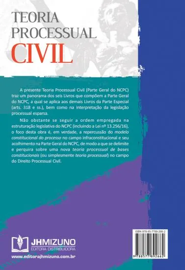 A presente Teoria Processual Civil (Parte Geral do NCPC) traz um panorama dos seis Livros que compõem a Parte Geral do NCPC, a qual se aplica aos demais Livros da Parte Especial (arts. 318 e ss.), bem como na interpretação da legislação processual esparsa. Não obstante se seguir a ordem empregada na estruturação legislativa do NCPC (incluindo a Lei nº 13.256/16), o foco desta obra é, em verdade, a repercussão do modelo constitucional do processo no campo infraconstitucional e seu acolhimento na Parte Geral do NCPC, de modo a que se delimite e perquira sobre uma nova teoria processual de bases constitucionais (ou simplesmente teoria processual) no campo do Direito Processual Civil.