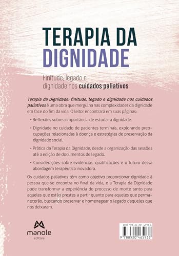 Terapia da Dignidade: finitude, legado e dignidade nos cuidados paliativos é uma ótima introdução a este trabalho pioneiro e inovador. Trazendo os fundamentos da dignidade nos cuidados e orientações práticas para leitores interessados em implementar o programa, este volume evidencia como a Terapia da Dignidade pode mudar a experiência do fim da vida para aqueles prestes a morrer – e para aqueles que ficarão para honrar o legado daqueles que se foram.