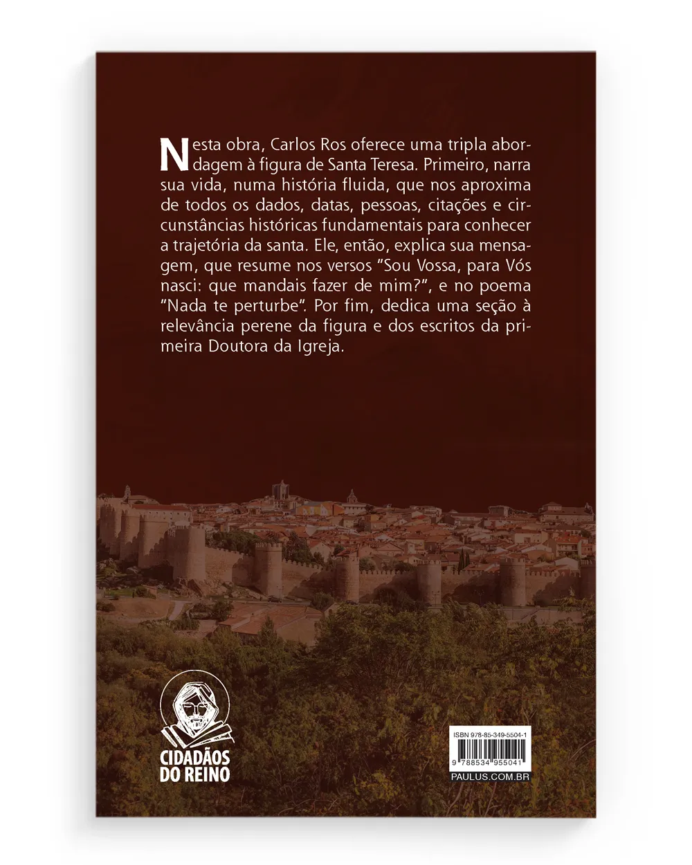 Nesta obra, Carlos Ros oferece uma tripla abordagem à figura de Santa Teresa. Primeiro, narra sua vida, numa história fluida que nos aproxima de todos os dados, datas, pessoas, citações e circunstâncias históricas fundamentais para conhecer a trajetória da santa. Ele, então, explica sua mensagem, que resume nos versos “Sou Vossa, para Vós nasci: que mandais fazer de mim?”, e no poema “Nada te perturbe”. Por fim, dedica uma seção à relevância perene da figura e dos escritos da primeira Doutora da Igreja.