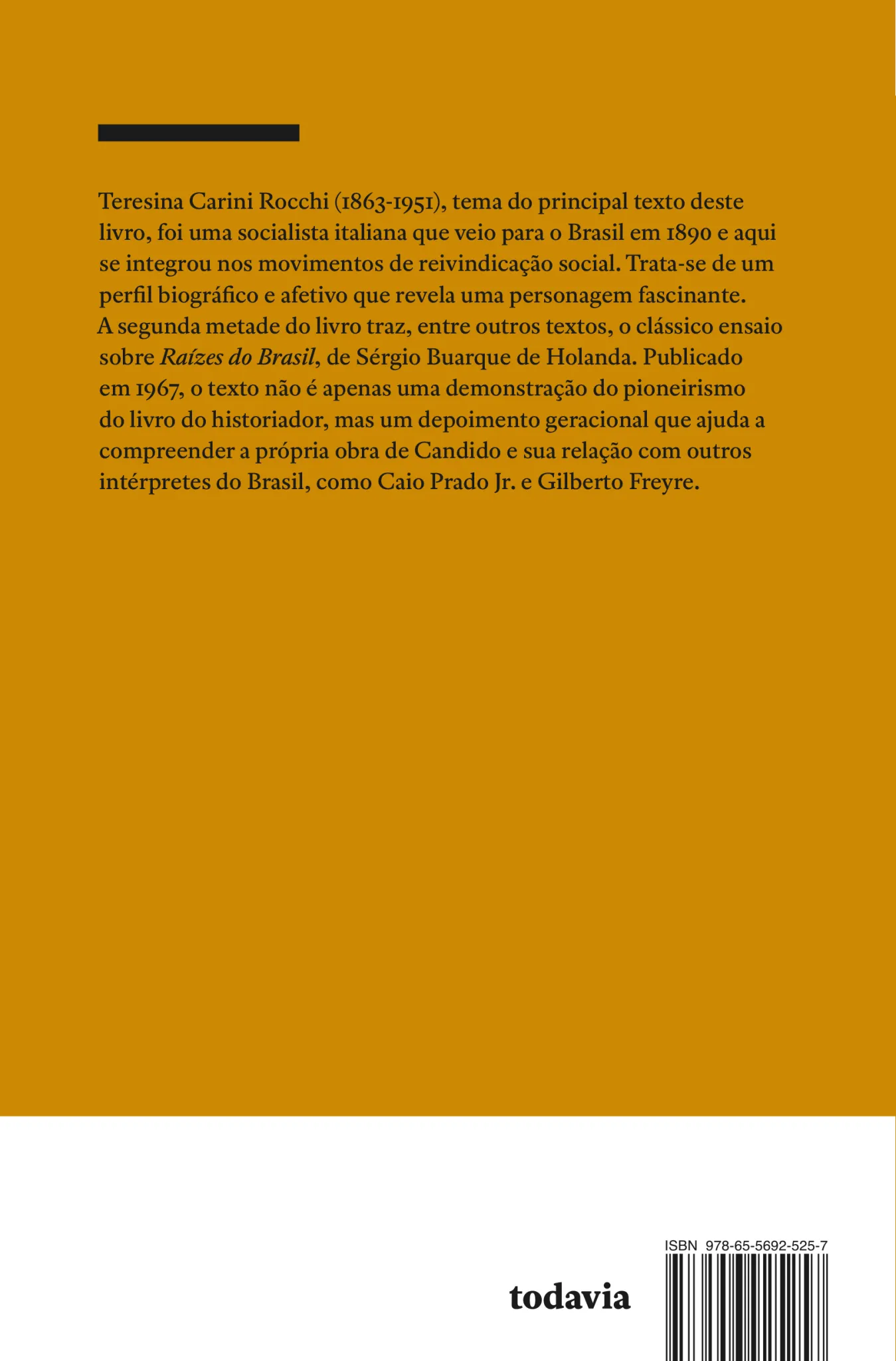 Considerado “o mais político” de seu autor, este livro começa tratando de Teresina Carini Rocchi, socialista italiana que veio para o Brasil em 1890 e aqui se integrou nos movimentos de reivindicação social em São Paulo até 1910. A segunda metade conta com seis textos variados, entre eles, um ensaio sobre Raízes do Brasil, de Sérgio Buarque de Holanda.