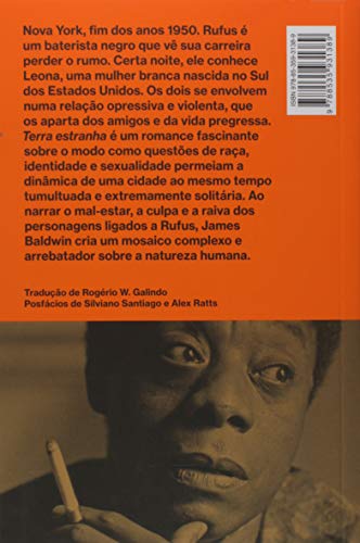 Tendo como pano de fundo a agitada cena musical de Nova York dos anos 1950, Terra estranha é um retrato franco sobre bissexualidade e relações inter-raciais, publicado em uma época em que esses assuntos eram tabu. Este romance de fôlego, publicado em 1962, tem como pano de fundo os clubes de jazz de Greenwich Village, em Nova York, na década de 1950. Rufus, um baterista negro em decadência, se envolve com Leona, uma mulher branca nascida no sul dos Estados Unidos. Dessa relação complexa em sua origem, desdobram-se temas caros a James Baldwin, como raça, nacionalismo, identidade, depressão e bissexualidade. Em Terra estranha, o celebrado autor de O quarto de Giovanni constrói uma obra comovente, violenta e apaixonada, cujos personagens tentam reverter a todo custo as barreiras da segregação racial e das convenções burguesas em busca da felicidade e de si mesmos.