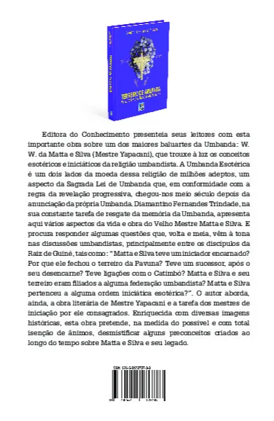 Editora do Conhecimento presenteia seus leitores com esta importante obra sobre um dos maiores baluartes da Umbanda: W. W. da Matta e Silva (Mestre Yapacani), que trouxe à luz os conceitos esotéricos e iniciáticos da religião umbandista. A Umbanda Esotérica é um dois lados da moeda dessa religião de milhões adeptos, um aspecto da Sagrada Lei de Umbanda que, em conformidade com a regra da revelação progressiva, chegou-nos meio século depois da anunciação da própria Umbanda. Diamantino Fernandes Trindade, na sua constante tarefa de resgate da memória da Umbanda, apresenta aqui vários aspectos da vida e obra do Velho Mestre Matta e Silva. E procura responder algumas questões que, volta e meia, vêm à tona nas discussões umbandistas, principalmente entre os discípulos da Raiz de Guiné, tais como: “Matta e Silva teve um iniciador encarnado? Por que ele fechou o terreiro da Pavuna? Teve um sucessor, após o seu desencarne? Teve ligações com o Catimbó? Matta e Silva e seu terreiro eram filiados a alguma federação umbandista? Matta e Silva pertenceu a alguma ordem iniciática esotérica?”. O autor aborda, ainda, a obra literária de Mestre Yapacani e a tarefa dos mestres de iniciação por ele consagrados. Enriquecida com diversas imagens históricas, esta obra pretende, na medida do possível e com total isenção de ânimos, desmistificar alguns preconceitos criados ao longo do tempo sobre Matta e Silva e seu legado.