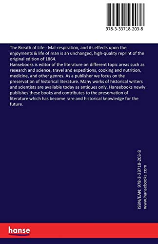 The Breath of Life – Mal-respiration, and its effects upon the enjoyments & life of man is an unchanged, high-quality reprint of the original edition of 1864.