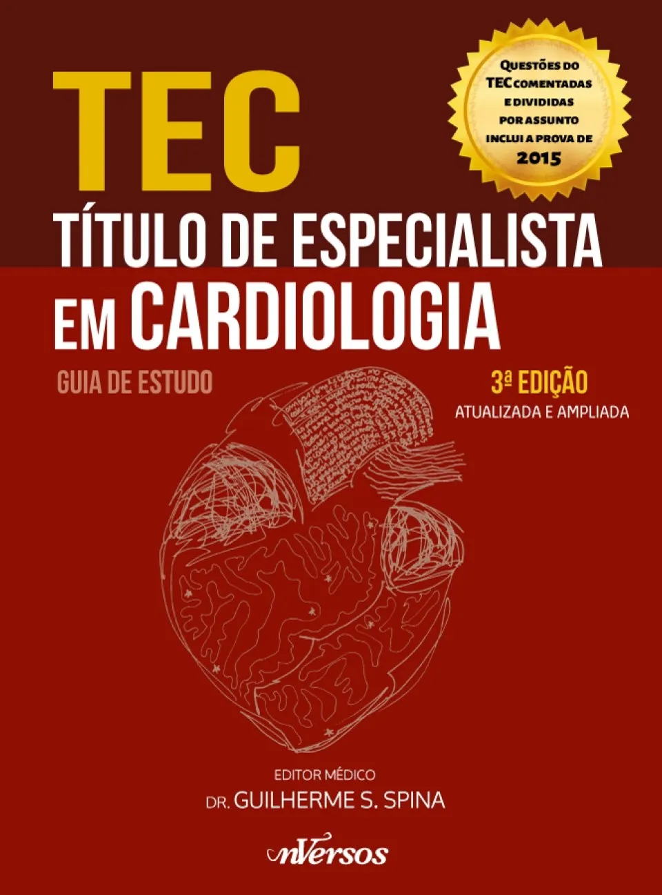 Título de Especialista em Cardiologia (TEC) – 3ª Edição. A nVersos editora lança a 3ª Edição do livro TEC,com intenção de propor um guia com método facilitado de estudo que otimize a gestão do tempo, com questões ordenadas como aparecem nas provas selecionados por especialidade da cardiologia. O Guia é indispensável para quem se prepara para a prova de obtenção do Título de Especialista em Cardiologia, reunindo questões das provas aplicadas pela Sociedade Brasileira de Cardiologia – SBC. Organizado pelo Prof. Dr. Guilherme Spina, da Faculdade de Medicina da Universidade de São Paulo (FMUSP), o livro é baseado no curso lecionado por Spina há muitos anos e que, além de atualizar os profissionais, visa prepará-los para o exame do TEC. Ao final de cada capítulo, o aluno é convidado a resolver as questões e depois conferi-las nos comentários, sendo que aquelas mais prevalentes recebem tratamento mais extenso e aprofundado, obedecendo à representatividade que cada subespecialidade tem na prova. 3ª Edição 2016: Atualizada e Ampliada em conformidade com as mais recentes Guidelines nacionais e Internacionais de Cardiologia. Exclusivo: Livro- texto e mais 8 anos de questões comentadas da Prova de Título de Especialista em Cardiologia. Inclui as questões do TEC 2015. Questões organizadas por especialidade Cardiológica. Ranking das Questões mais importantes.