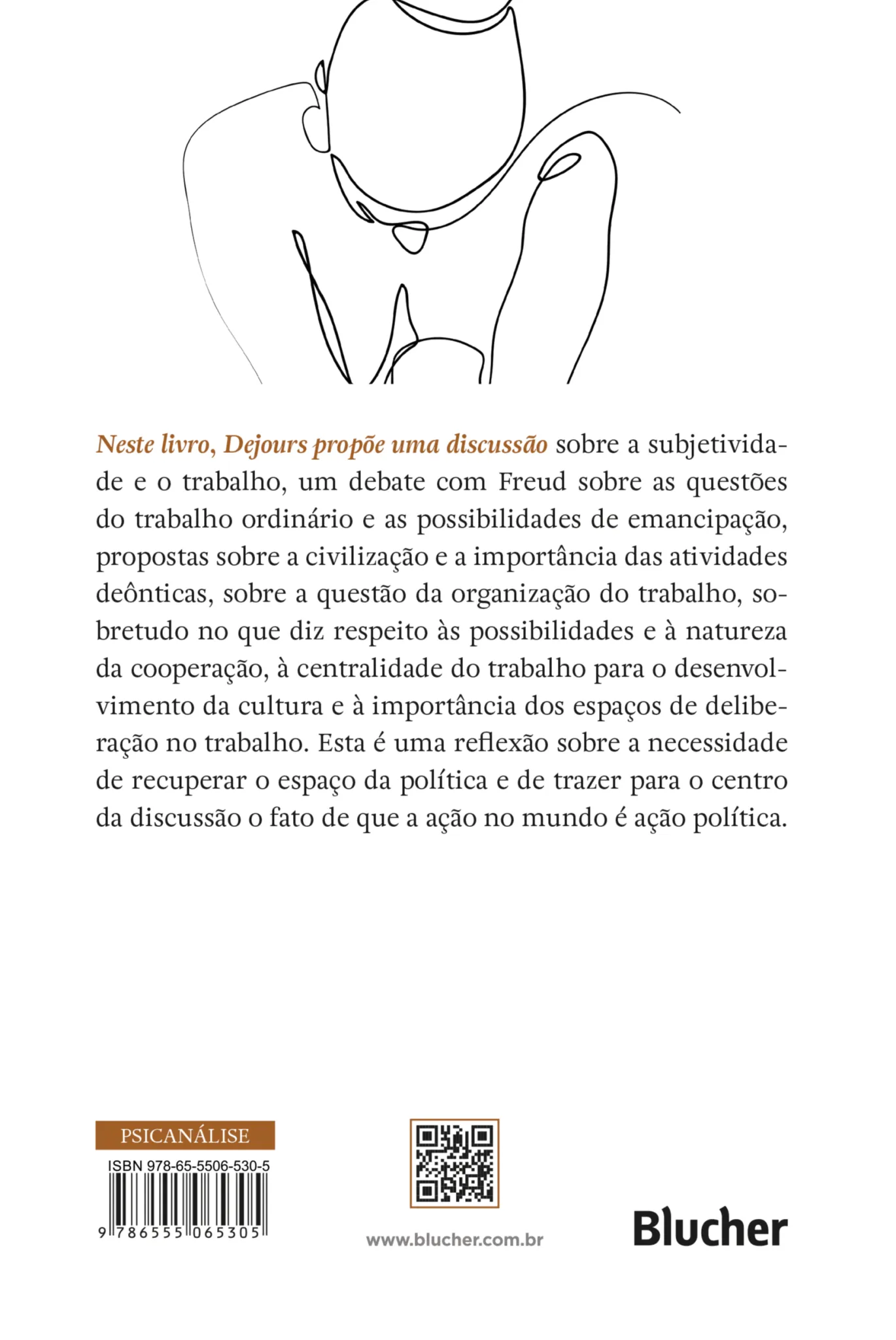 Neste livro, Dejours propõe uma discussão sobre a subjetividade e o trabalho, um debate com Freud sobre as questões do trabalho ordinário e as possibilidades de emancipação, propostas sobre a civilização e a importância das atividades deônticas, sobre a questão da organização do trabalho, sobretudo no que diz respeito às possibilidades e à natureza da cooperação, à centralidade do trabalho para o desenvolvimento da cultura e à importância dos espaços de deliberação no trabalho. Esta é uma reflexão sobre a necessidade de recuperar o espaço da política e de trazer para o centro da discussão o fato de que a ação no mundo é ação política.