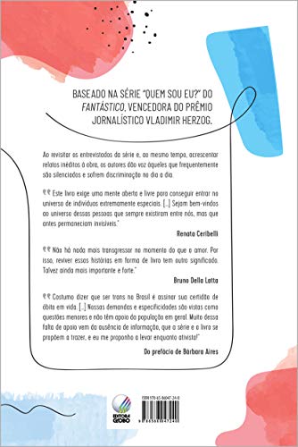 A obra baseada na série Quem sou eu?, do Fantástico, vencedora do prêmio Vladimir Herzog Em Trans – Histórias reais que ajudam a entender a vida das pessoas transexuais desde a infância, os jornalistas Renata Ceribelli e Bruno Della Latta revisitam os entrevistados da reportagem e também reúnem relatos inéditos daqueles que frequentemente são silenciados e discriminados no dia a dia. “Este livro exige uma mente aberta e livre para conseguir entrar no universo de indivíduos extremamente especiais. […] Sejam bem-vindos ao universo dessas pessoas que sempre existiram entre nós, mas que antes permaneciam invisíveis.” – Renata Ceribelli “Não há nada mais transgressor no momento do que o amor. Por isso, reviver essas histórias em forma de livro tem outro significado. Talvez ainda mais importante e forte” – Bruno Della Latta “Costumo dizer que ser trans no Brasil é assinar sua certidão de óbito em vida. […] Nossas demandas e especificidades são vistas como questões menores e não têm apoio da população em geral. Muito dessa falta de apoio vem da ausência de informação, que a série e o livro se propõem a trazer, e eu me proponho a levar enquanto ativista!” – do prefácio de Bárbara Aires, consultora de gênero.