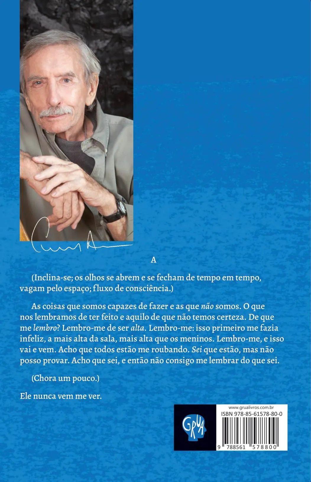 Neste drama em dois atos, a frágil e senil A se recorda de seu marido com quem tinha uma relação fria, do filho que foi embora faz muitos anos e que ela não vê, de cenas por vezes nítidas, por vezes nebulosas, que lhe marcaram a história. B e C ouvem o relato e intervém com as certezas e dúvidas de suas idades. O segundo ato traz surpresas ao leitor, uma descontinuidade aparente.