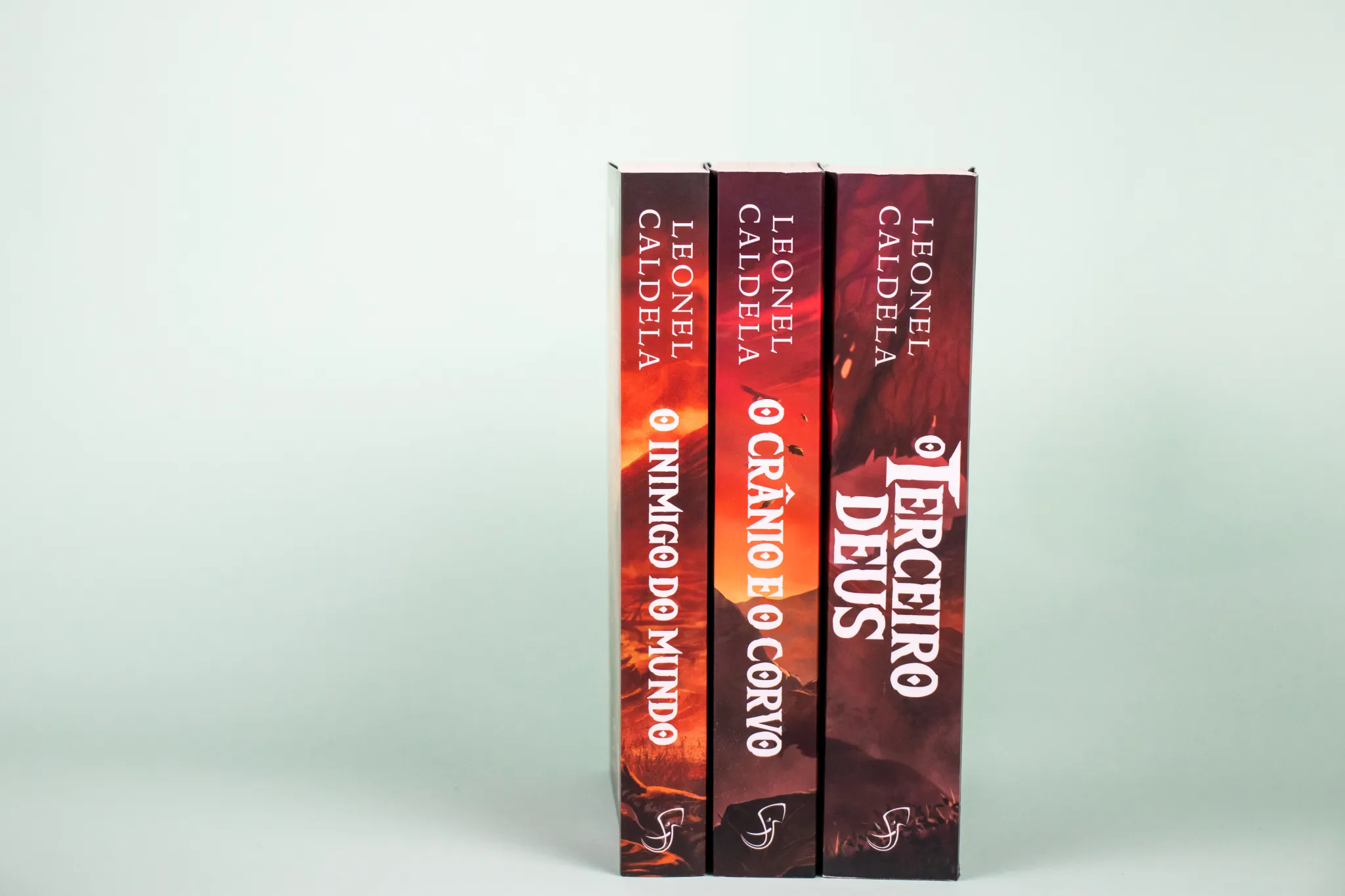 Box com os títulos: O Inimigo do Mundo, O Crânio e o Corvo e O Terceiro Deus.