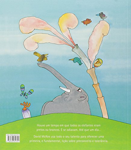 Uma lição fundamental sobre preconceito, violência e tolerância Houve um tempo em que os elefantes eram pretos ou brancos. Eles amavam todos os animais, mas se odiavam e cada grupo ficava do seu lado da selva. Dessa inimizade, deu-se início uma batalha terrível. Os elefantes que não apoiavam a guerra vão viver no fundo da floresta e durante muito tempo não se vê mais nenhum elefante no mundo. Até que um dia os netos dos elefantes pacíficos emergem da selva. Numa obra excepcional, David McKee usa todo o seu talento para fazer as crianças pensarem sobre as diferenças.