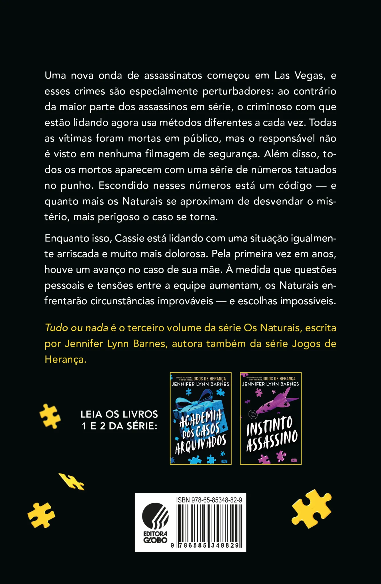 Terceiro volume da série iniciada por Academia dos casos arquivados, Tudo ou nada é mais um thriller surpreendente de Jennifer Lynn Barnes, autora do best-seller Jogos de Herança, que vai te prender do início ao fim!