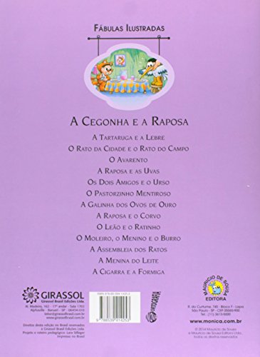 Nesta encantadora coleção de 14 livros, encontramos as fábulas clássicas de Esopo, representadas pelos divertidos personagens da Turma da Mônica. Temas como a amizade, a generosidade, a honestidade e a superação ganham uma roupagem especial ao lado de Mônica, Cebolinha, Magali, Cascão e seus amigos, e ajudam a despertar o interesse das crianças pela leitura.