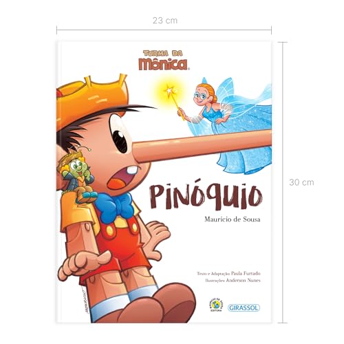 As peripécias de Pinóquio, a doçura de Gepeto, a bondade da Fada Azul e a sabedoria do Grilo Falante são conhecidas dos leitores há gerações, e agora são apresentadas com o bom humor característico da Turma da Mônica, nesta versão belamente ilustrada da coleção Grandes Clássicos. Chico Bento dá vida à Pinóquio, enquanto o divertido Zé Lelé encarna o Grilo Falante. Os aprendizados da Fada Azul não poderiam ser transmitidos por outra pessoa que não fosse a sábia professora Marocas. E ninguém mais especial que o próprio Mauricio de Sousa para interpretar Gepeto e transmitir tanto amor a uma de suas criações. A coleção Grandes Clássicos – que reúne renomadas obras da literatura infantil universal, sempre com os amados personagens de Mauricio de Sousa – vai encantar ainda mais os leitores, que poderão colecionar os mais belos livros da turminha.