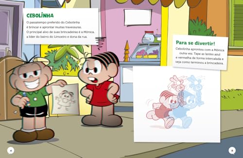 Cada amigo da Turma da Mônica tem um passatempo preferido. Cebolinha adora passar o tempo planejando travessuras com os amigos. Já a Mônica gosta de passear pelo Limoeiro em companhia do Sansão. Que tal descobrir os passatempos preferidos da Turminhas e divertir-se com as atividades em 3-D deste livro?