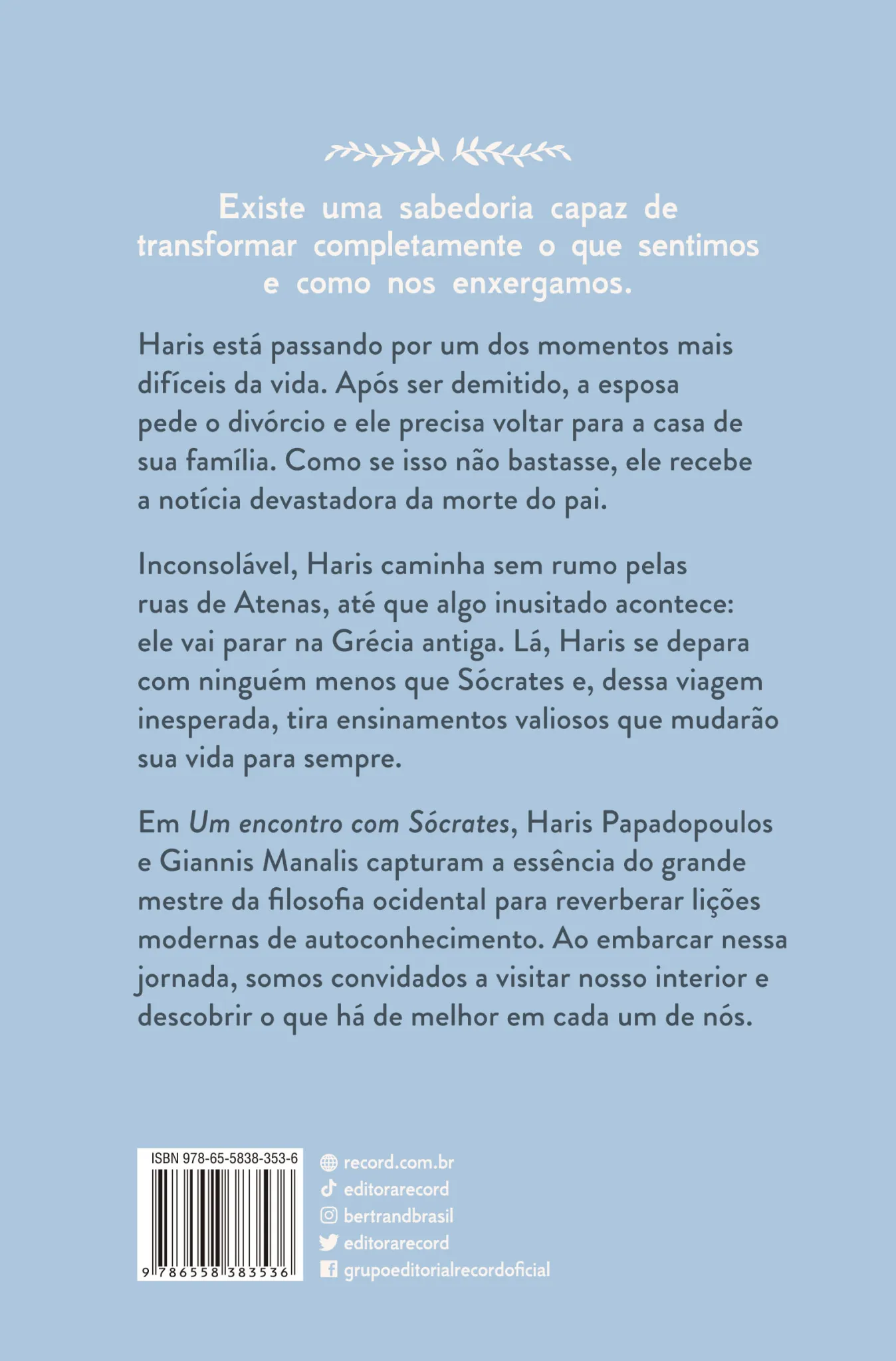Se você pudesse conhecer Sócrates, uma das personalidades mais importantes da filosofia ocidental, o que diria a ele? Em Um encontro com Sócrates, Haris Papadopoulos e Giannis Manalis nos convidam a passar uma instigante tarde de autoconhecimento ao lado dos discípulos deste renomado e enigmático filósofo da antiguidade.