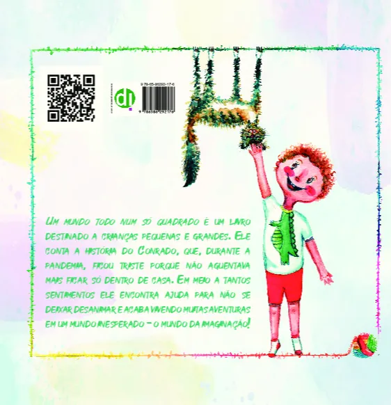 Um mundo todo num só quadrado é um livro destinado a crianças pequenas e grandes. Ele conta a história do Conrado, que, durante a pandemia, ficou triste porque não aguentava mais ficar só dentro de casa. Em meio a tantos sentimentos ele encontra ajuda para não se deixar desanimar e acaba vivendo muitas aventuras em um mundo inesperado – o mundo da imaginação!