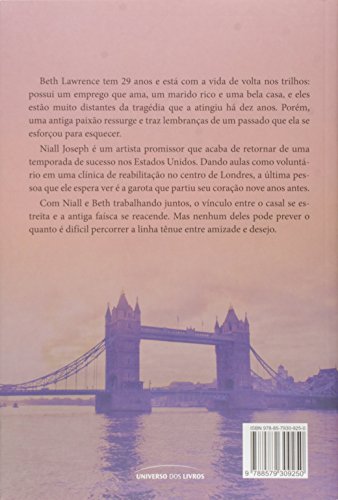 O primeiro livro da série Love in London, da mesma autora de Sempre foi você, traz uma evolvente história de amor e superação.Beth Lawrence tem 29 anos e está com a vida de volta nos trilhos: um emprego que ela ama, um marido rico e uma bela casa estão muito distantes da tragédia que a atingiu quando tinha 19 anos. Porém, uma antiga paixão ressurge e traz lembranças de um passado que ela se esforçou para esquecer.Niall Joseph é um artista promissor que acaba de retornar de uma temporada de sucesso nos Estados Unidos. Dando aulas como voluntário em uma clínica de reabilitação no centro de Londres, a última pessoa que ele espera ver é a garota que partiu seu coração nove anos antes. Com Niall e Beth trabalhando juntos, o vínculo entre o casal se estreita e a antiga faísca se reacende. Mas nenhum deles pode prever o quanto é difícil trilhar a linha tênue entre amizade e desejo .Carrie Elks vive perto de Londres e escreve romances contemporâneos. Aos 21 anos, saiu da faculdade com um diploma em ciência política, uma conta no vermelho, e seu futuro marido. Ela ama viajar e conhecer pessoas novas, e também já morou nos EUA e na Suíça. Fã de redes sociais, tenta limitar o tempo no Facebook ou no Twitter a momentos roubados entre um capítulo e outro. Quando não está lendo ou escrevendo, pode ser encontrada cozinhando, bebendo um vinho ou tentando descobrir como combinar os dois.Outros livros da autora: – Sempre foi você