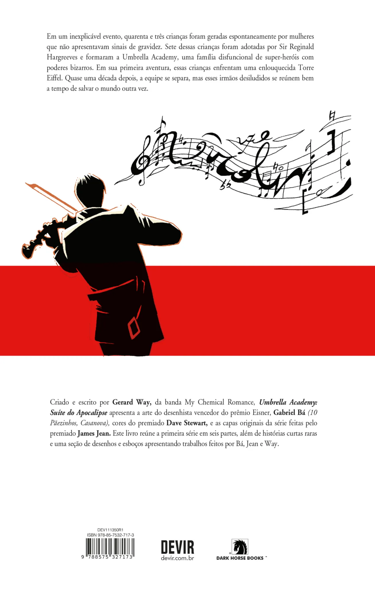 Em um inexplicável evento, quarenta e três crianças foram geradas espontaneamente por mulheres que não apresentavam sinais de gravidez. Sete dessas crianças foram adotadas por Sir Reginald Hargreeves e formaram a Umbrella Academy, uma família disfuncional de super-heróis com poderes bizarros. Em sua primeira aventura, essas crianças enfrentam uma enlouquecida Torre Eiffel. Quase uma década depois, a equipe se separa, mas esses irmãos desiludidos se reúnem bem a tempo de salvar o mundo outra vez. Criado e escrito por Gerard Way, da banda My Chemical Romance, The Umbrella Academy: Suíte do Apocalipse apresenta a arte do desenhista vencedor do prêmio Eisner, Gabriel Bá (10 Pãezinhos, Casanova), cores do premiado Dave Stewart, e as capas originais da série feitas pelo premiado James Jean. Este volume reúne Umbrella Academy Apocalypse Suite #1-6, mais duas histórias curtas e uma seção de desenhos e esboços apresentando trabalhos feitos por Bá, Jean e Way.