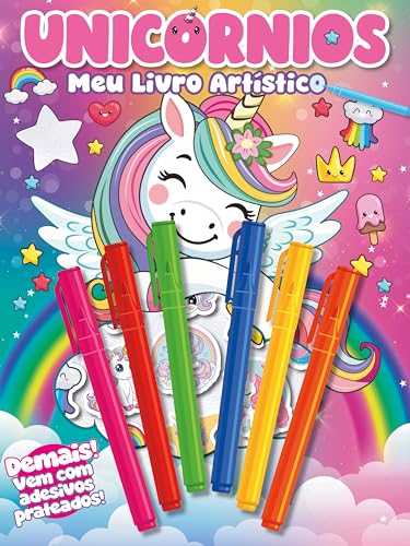 Unicórnios – Meu Livrinho Artístico vai levar a criançada para um mundo cheio de magia, cores e diversão! Com canetinhas coloridas e adesivos fofos, cada página vira uma nova aventura para soltar a imaginação e criar desenhos cheios de encanto. Um livrinho que diverte, ensina e transforma o momento de brincar em pura fantasia!