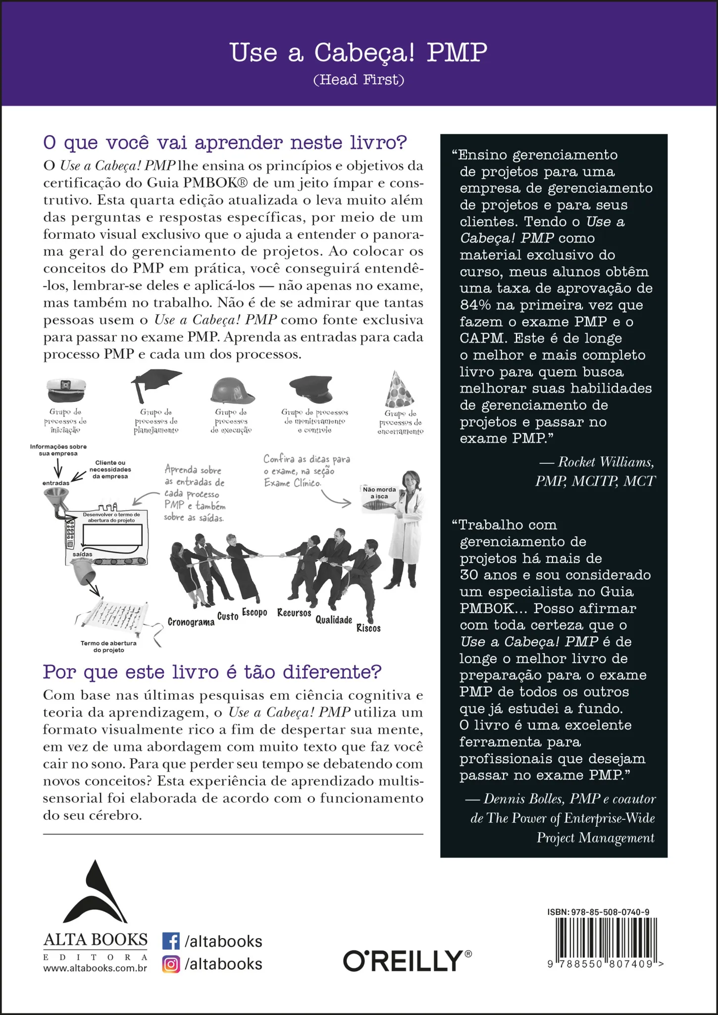 “Trabalho com gerenciamento de projetos há mais de 30 anos e sou considerado um especialista no Guia PMBOK… Posso afirmar com toda certeza que o Use a Cabeça! PMP é de longe o melhor livro de preparação para o exame PMP de todos os outros que já estudei a fundo. O livro é uma excelente ferramenta para profissionais que desejam passar no exame PMP.”