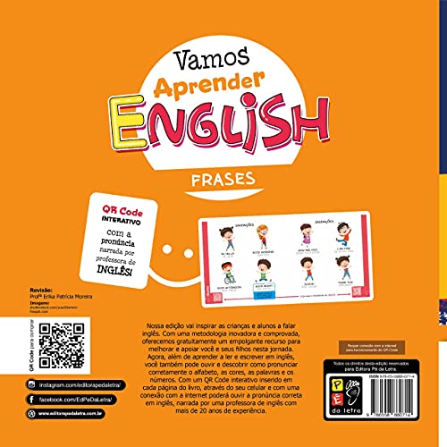 Nossa edição vai inspirar as crianças e alunos a falar inglês. Com uma metodologia inovadora e comprovada, oferecemos gratuitamente um empolgante recurso para melhorar e apoiar você e seus filhos nesta jornada. Agora, além de aprender a ler e escrever em inglês, você também pode ouvir e descobrir como pronunciar corretamente o alfabeto, as cores, as palavras e os números. Com um QRCode interativo inserido em cada página do livro, através do seu celular e com uma conexão com a internet poderá ouvir a pronúncia correta em inglês, narrada por uma professora de inglês com mais de 20 anos de experiência.