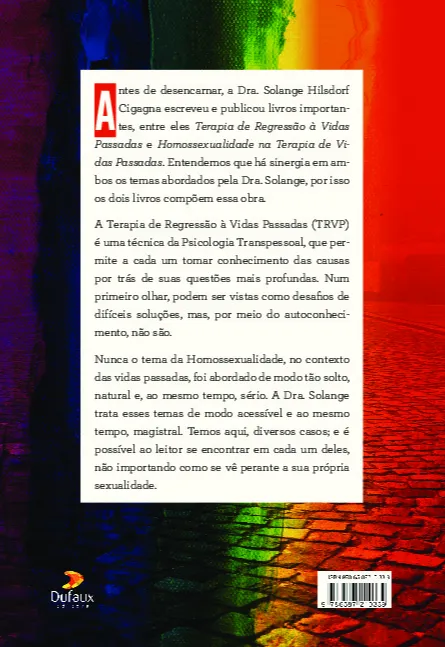 A Terapia de Regressão à Vidas Passadas (TRVP) é uma técnica da Psicologia Transpessoal, que permite a cada um tomar conhecimento das causas por trás de suas questões mais profundas. Num primeiro olhar, podem ser vistas como desafios de difíceis soluções, mas, por meio do autoconheci – mento, não são. Nunca o tema da Homossexualidade, no contexto das vidas passadas, foi abordado de modo tão solto, natural e, ao mesmo tempo, sério. A Dra. Solange trata esses temas de modo acessível e ao mesmo tempo, magistral. Temos aqui, diversos casos; e é possível ao leitor se encontrar em cada um deles, não importando como se vê perante a sua própria sexualidade.
