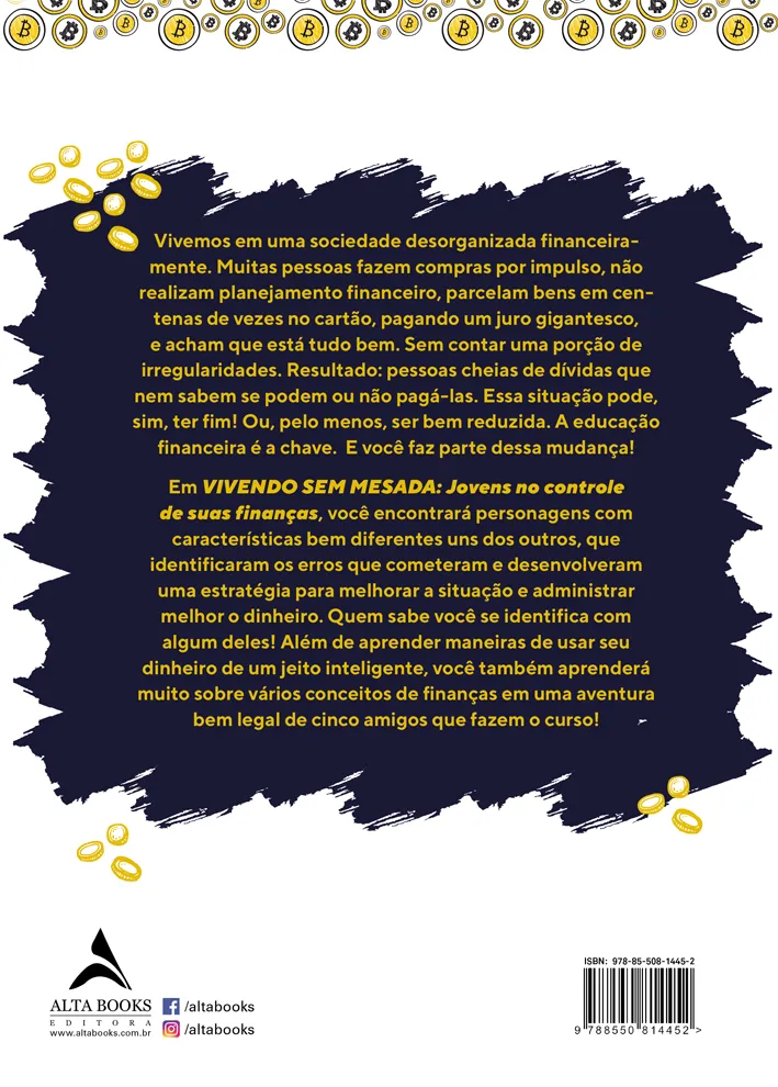 VIVENDO SEM MESADA: Jovens no controle de suas finanças tem o propósito de levar esse conhecimento, de forma mais tranquila que a convencional e sem abrir mão da qualidade, tanto ao público-alvo, composto por jovens entre 14 e 16 anos, como aos adultos. A proposta surgiu diante do cenário de ausência de conhecimentos sobre educação financeira pela população brasileira, ocasionado pelo fato de o assunto não ser abordado nas escolas durante a formação dos jovens e também pelo difícil acesso a materiais de qualidade e com linguagem acessível sobre o tema. Queremos provocar uma discussão sobre a necessidade de se educar financeiramente durante o período escolar e ter essas informações compartilhadas com a família. Assim, ao mesmo tempo em que os jovens e demais interessados passam a conhecer o tema, levam para suas casas o conhecimento adquirido, instigando seus familiares ao contato com este material. Neste livro, com uma linguagem informal e tranquila, o leitor encontrará um ambiente construído de forma didática para facilitar o entendimento. A própria interação com o escritor e com os personagens foi planejada especialmente para parecer mais um bate-papo.