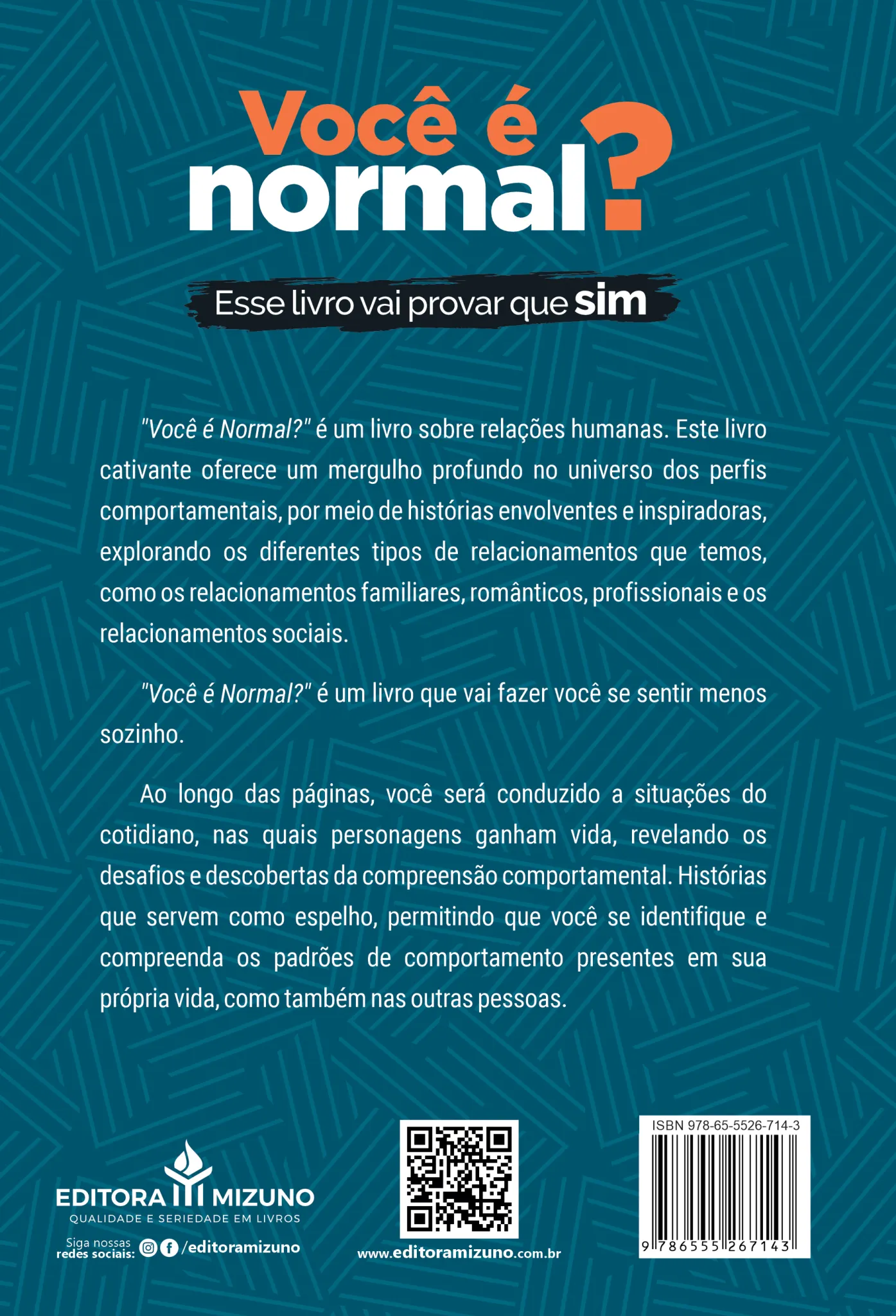“Você é Normal?” é um livro sobre relações humanas. Este livro cativante oferece um mergulho profundo no universo dos perfis comportamentais, por meio de histórias envolventes e inspiradoras, explorando os diferentes tipos de relacionamentos que temos, como os relacionamentos familiares, românticos, profissionais e os relacionamentos sociais.