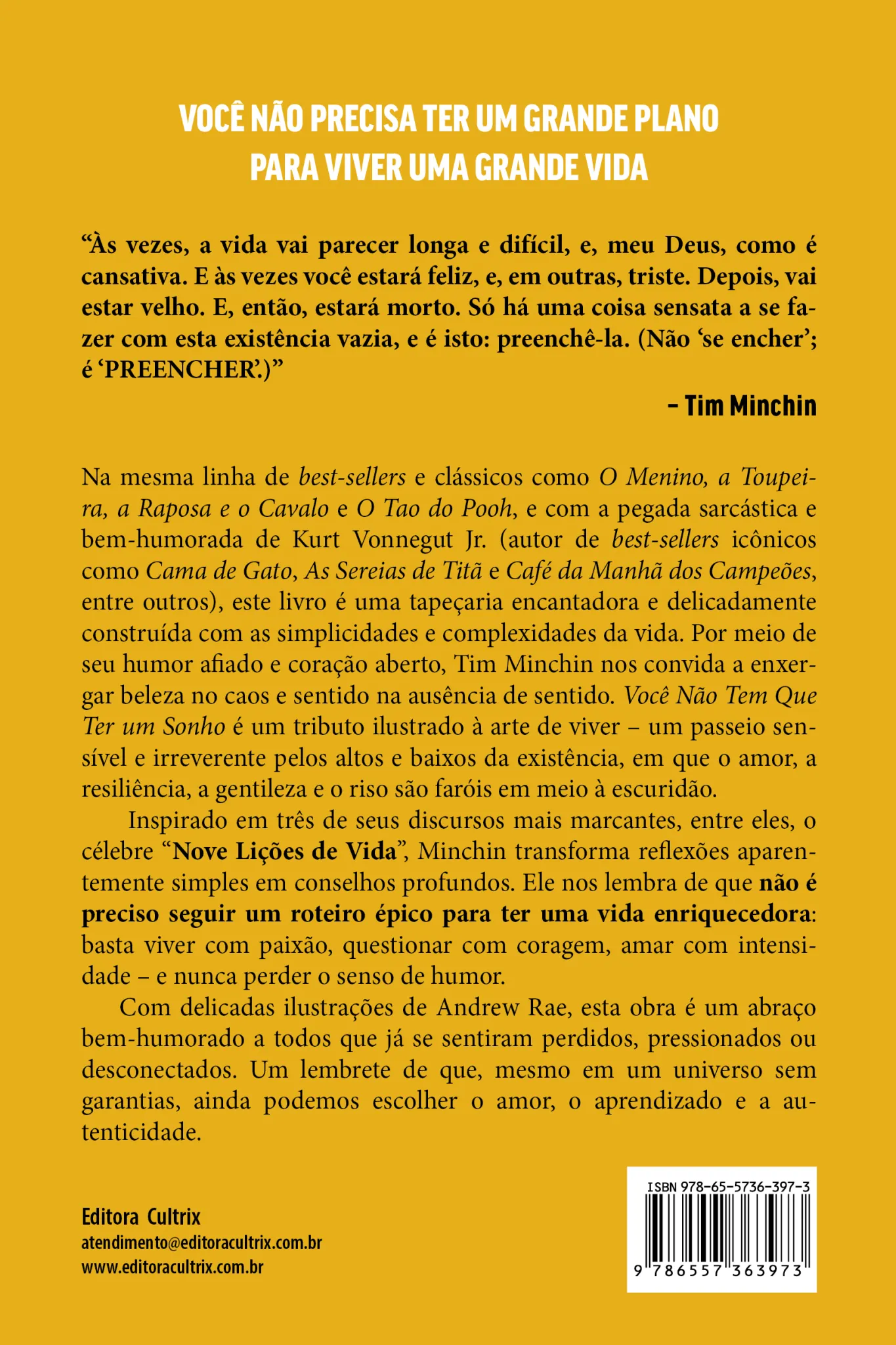 Se você anda se sentindo perdido, sobrecarregado ou simplesmente cansado de fórmulas prontas para a felicidade, Você Não Tem Que Ter um Sonho. é o respiro que você merece.
